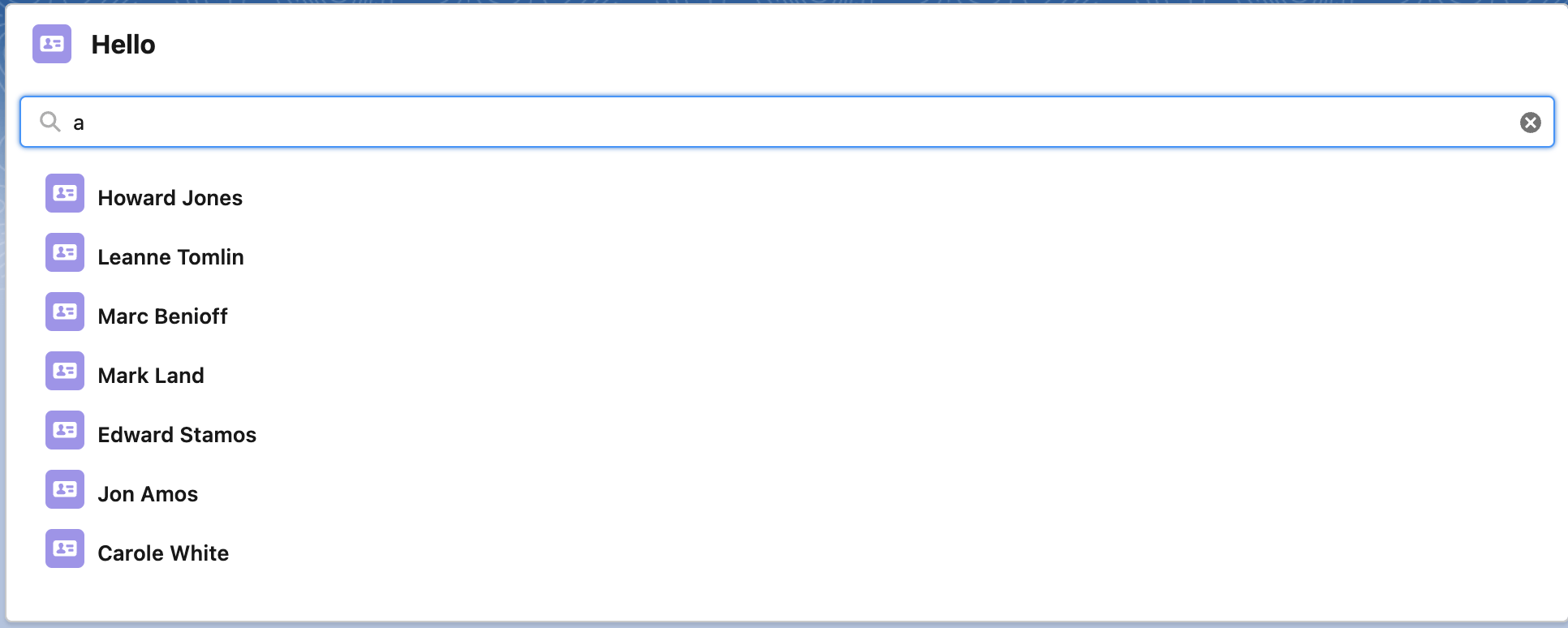 In this component, we will display the list of all the records which will be returned matching the entered text. Here is the code for the HTML markup & JavaScript Class.